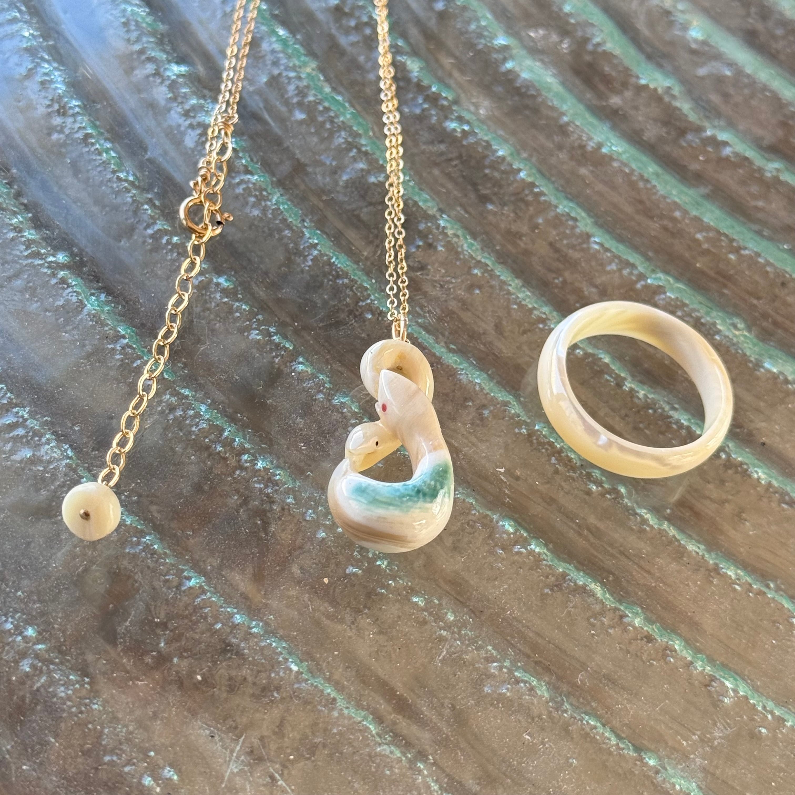 【オーダー注文】夜光貝 8の蛇 & 夜光貝 真珠層の指輪
