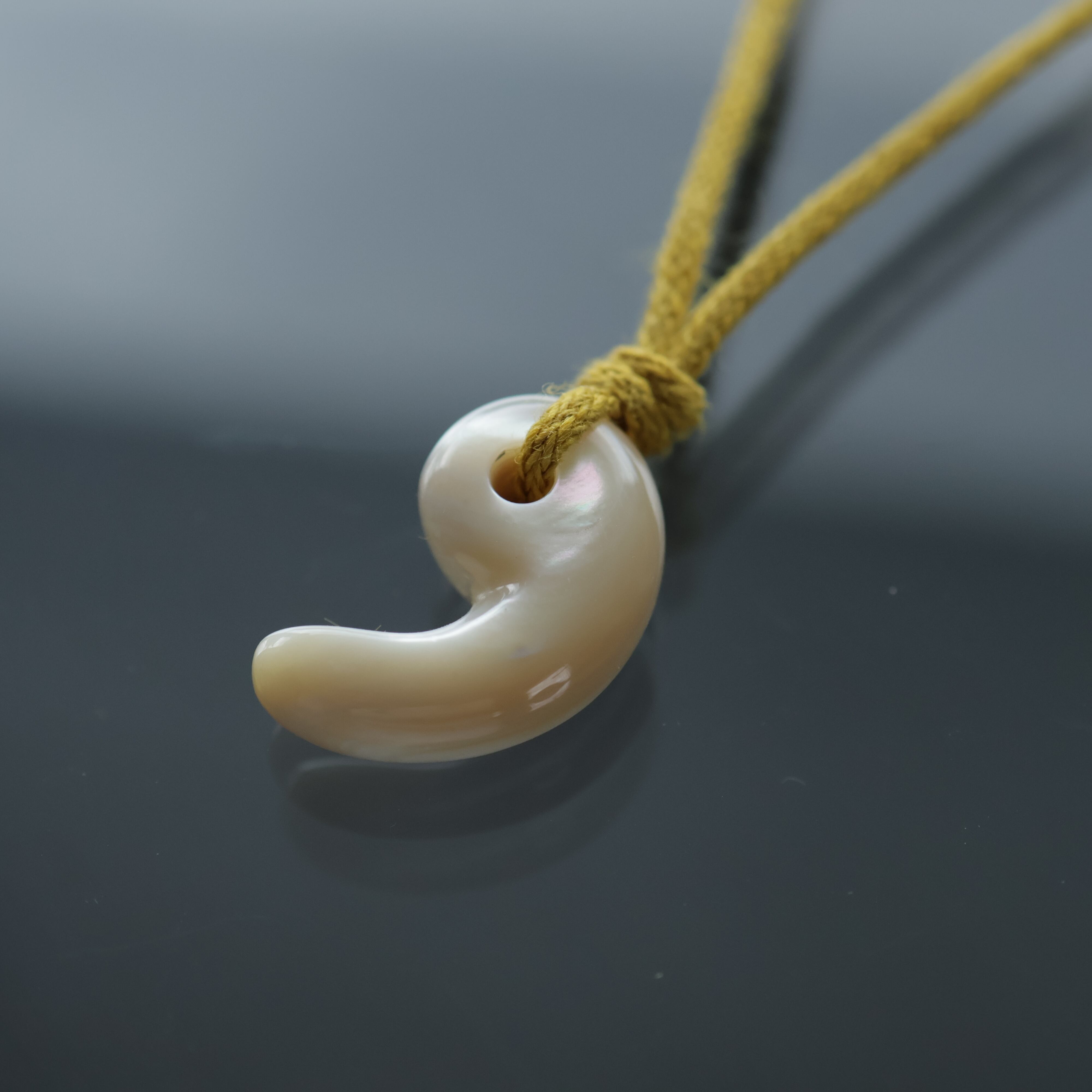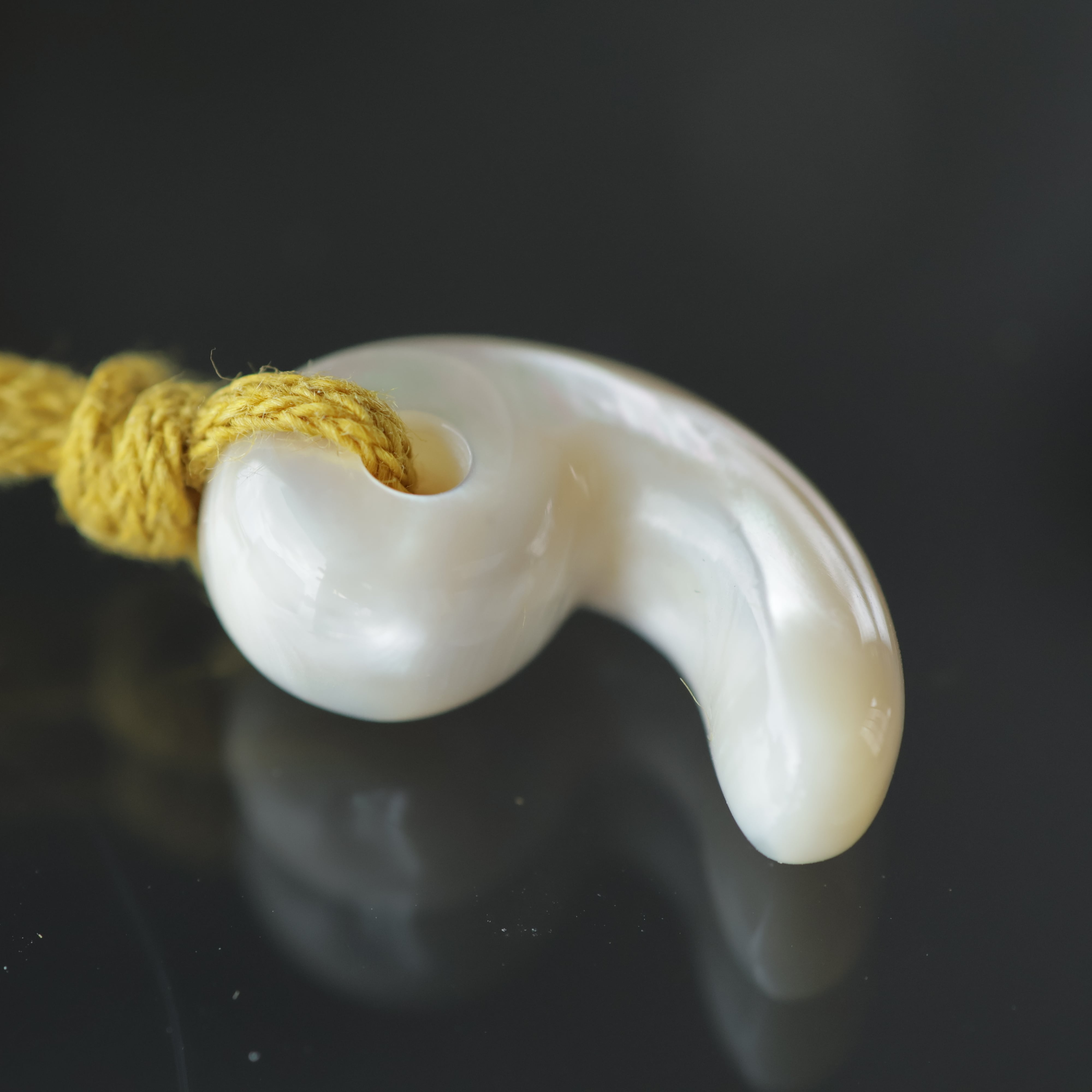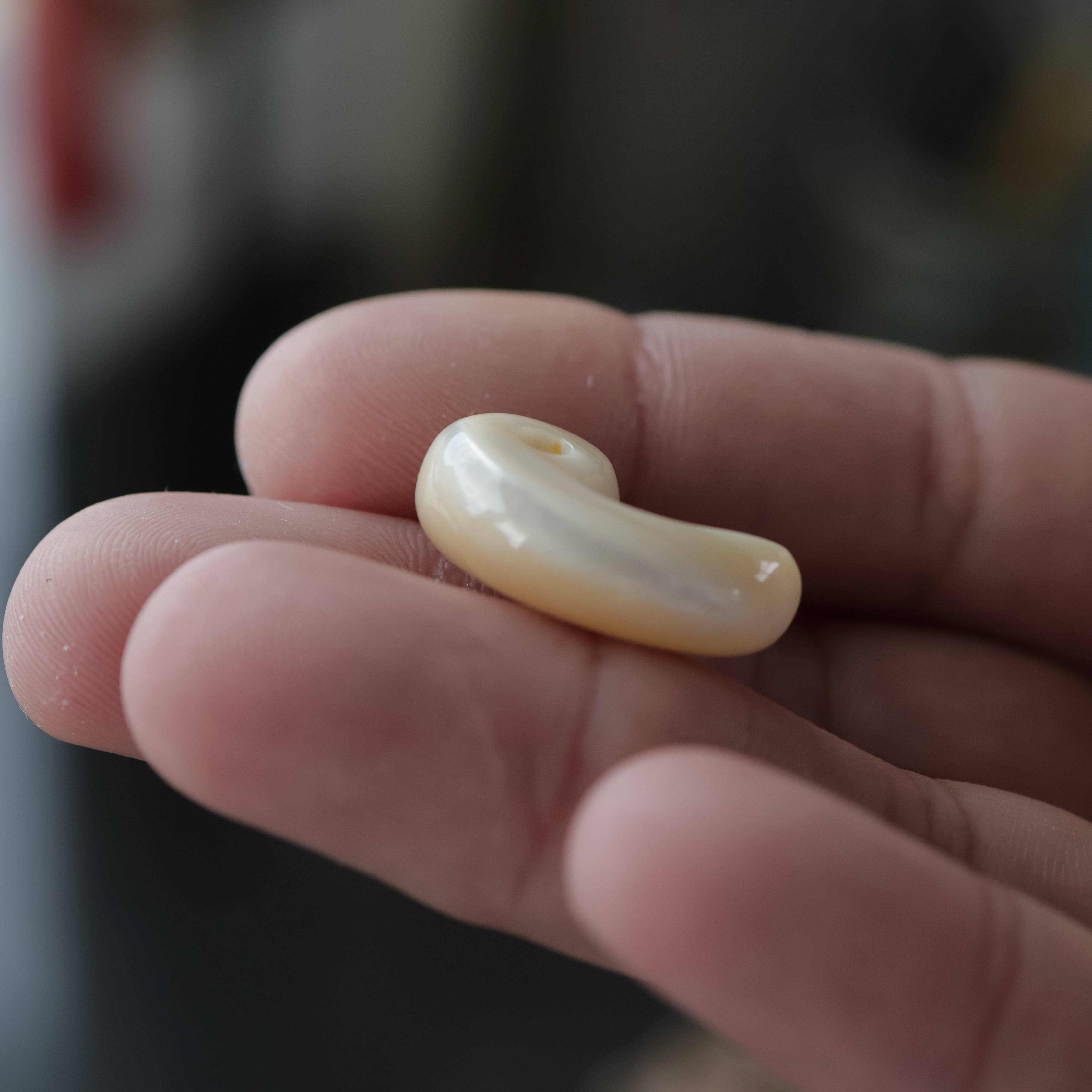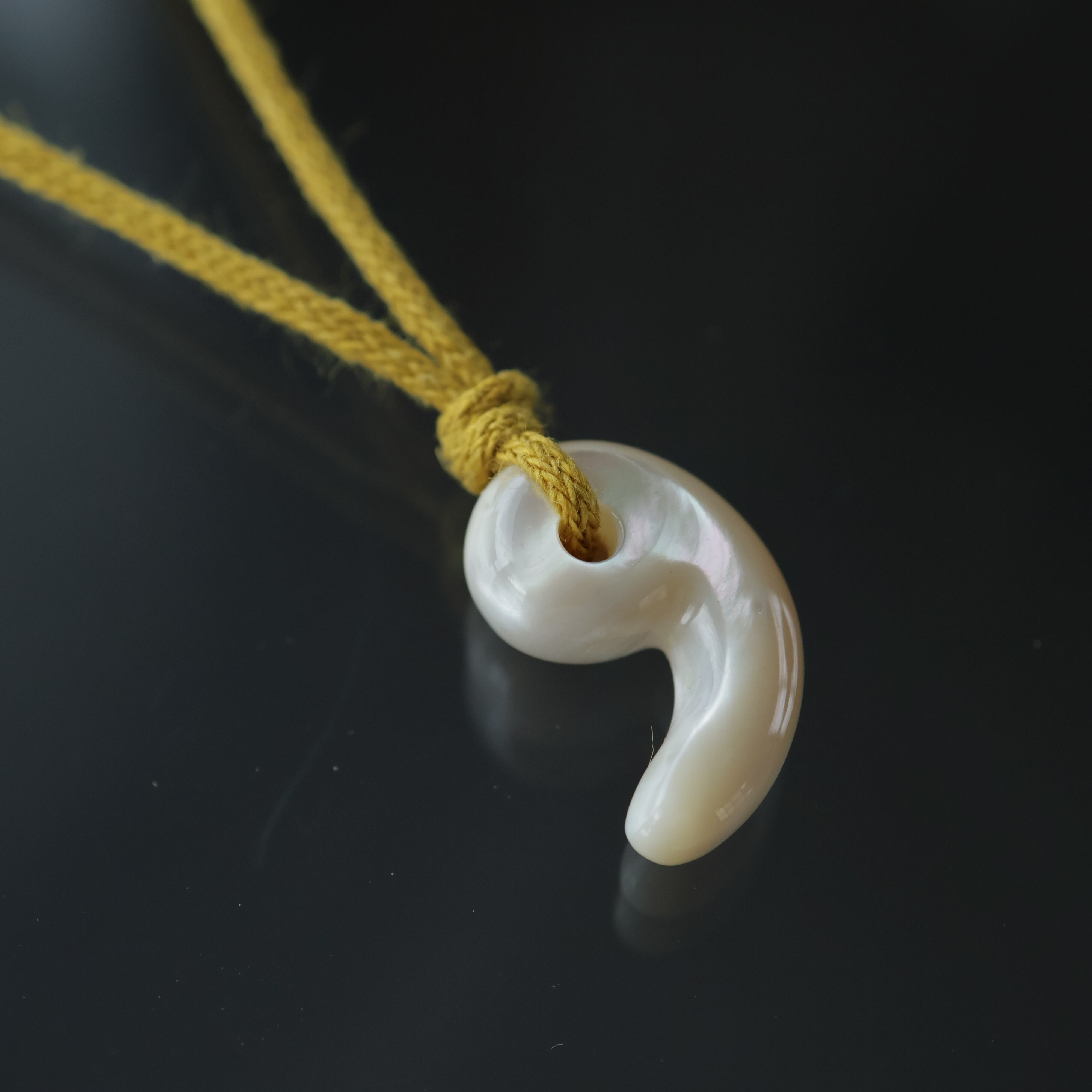 真珠層から手作りした勾玉。