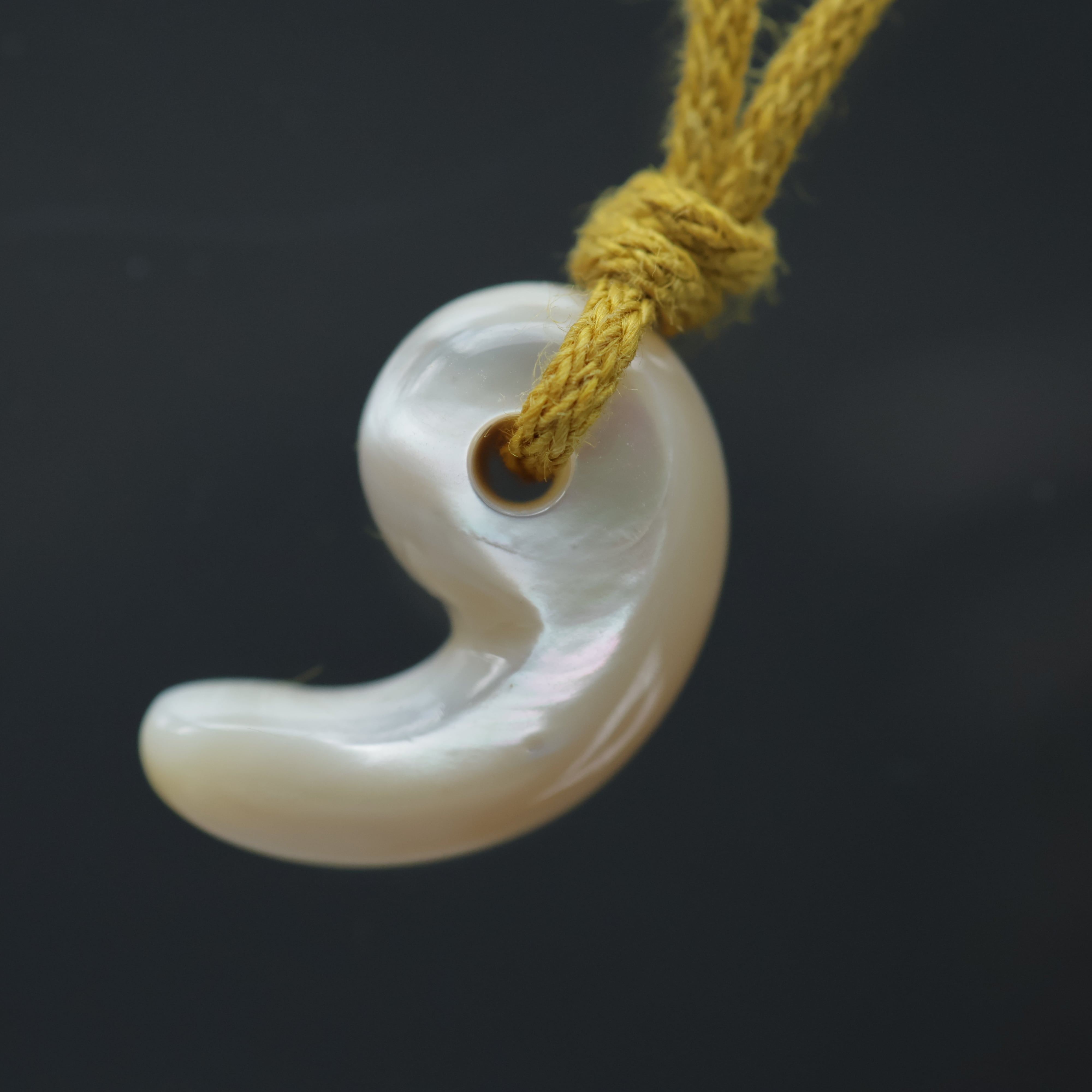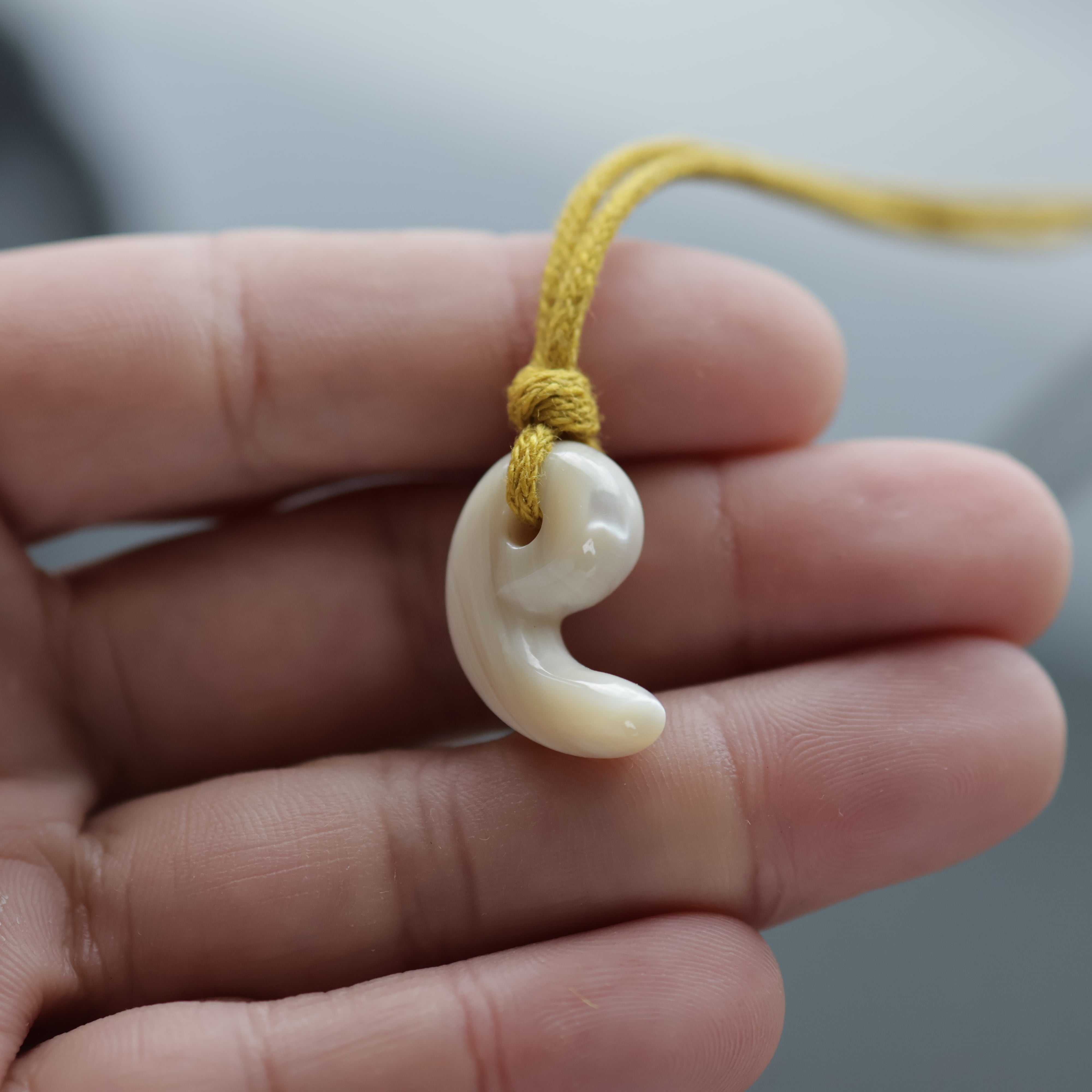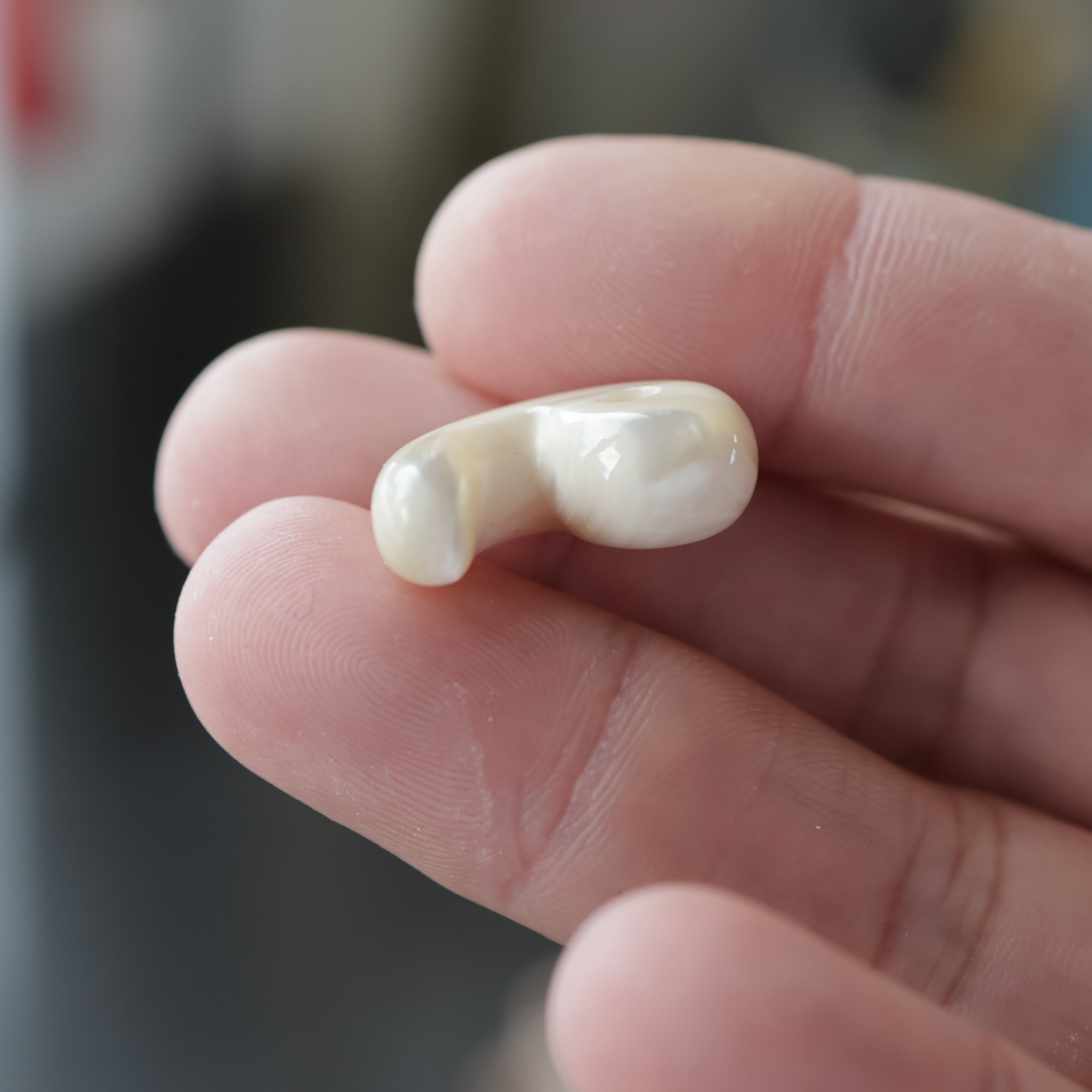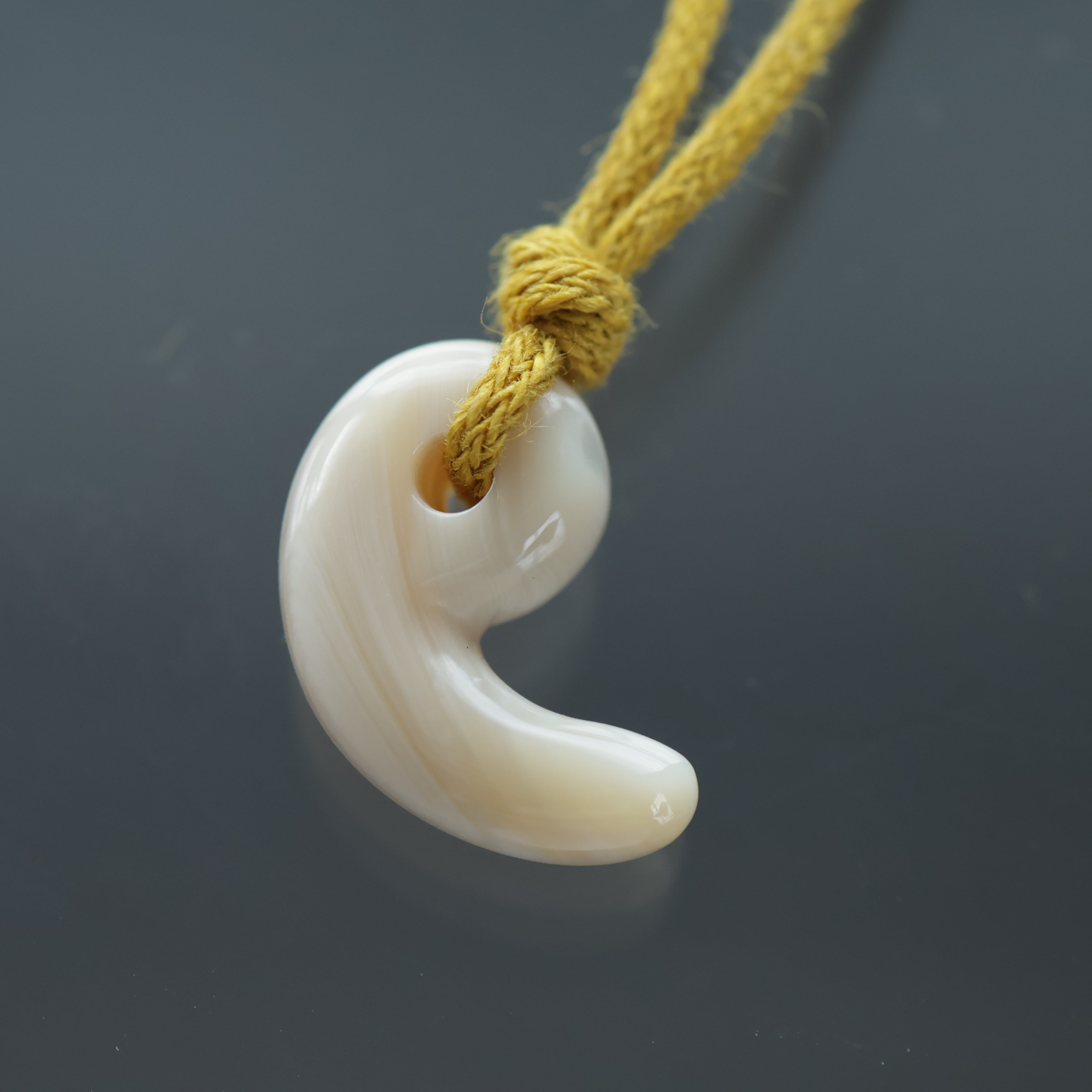 真珠層から手作りした勾玉。
