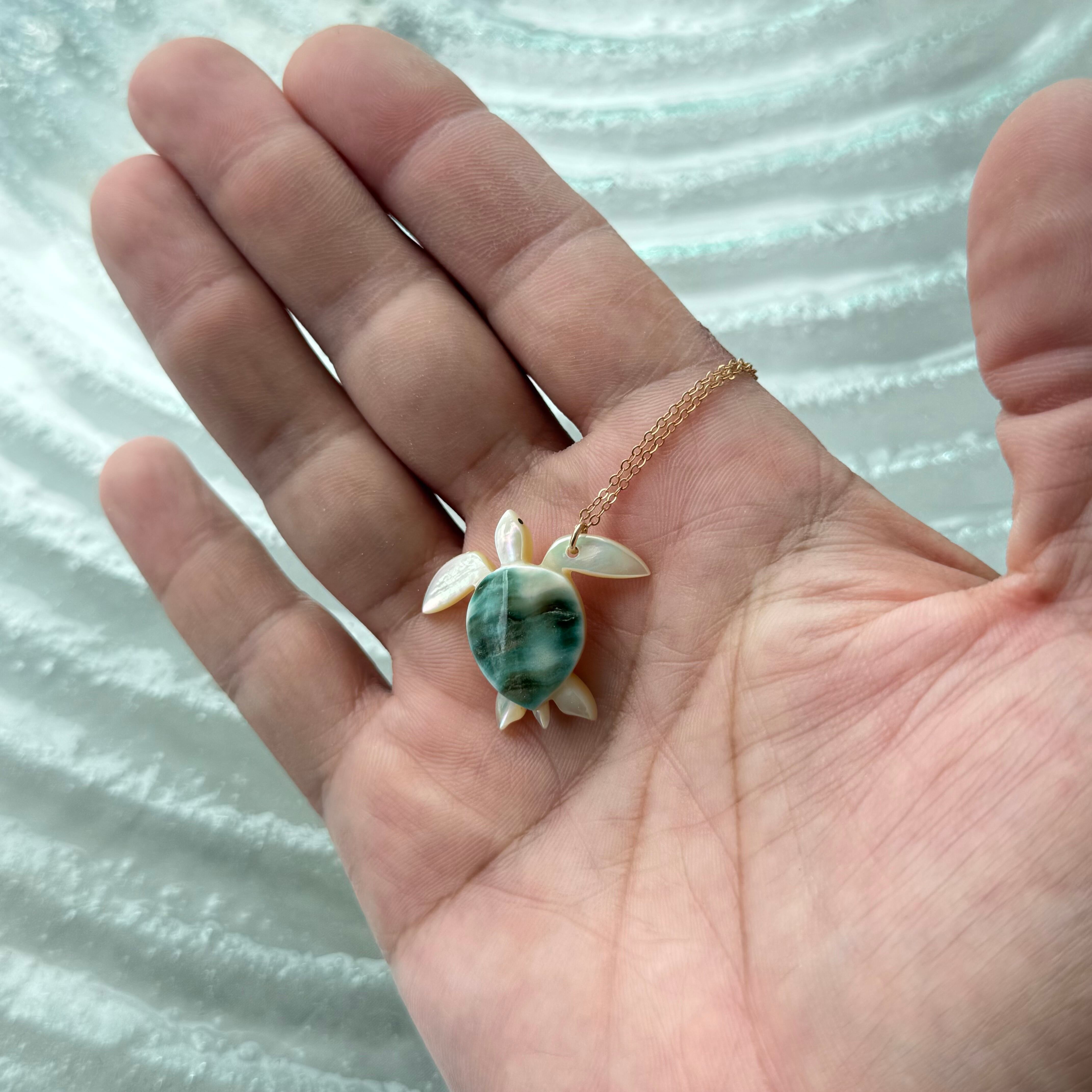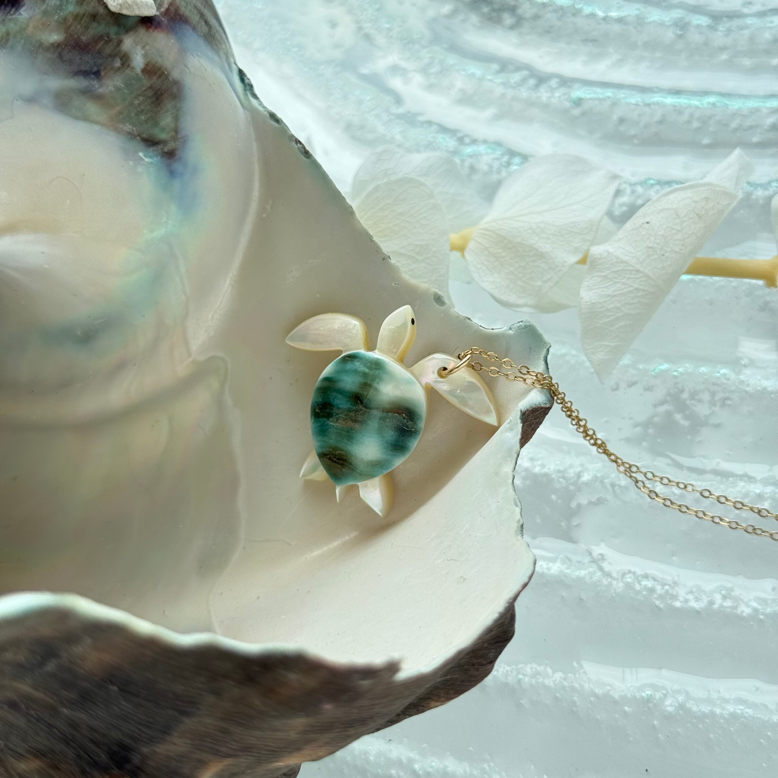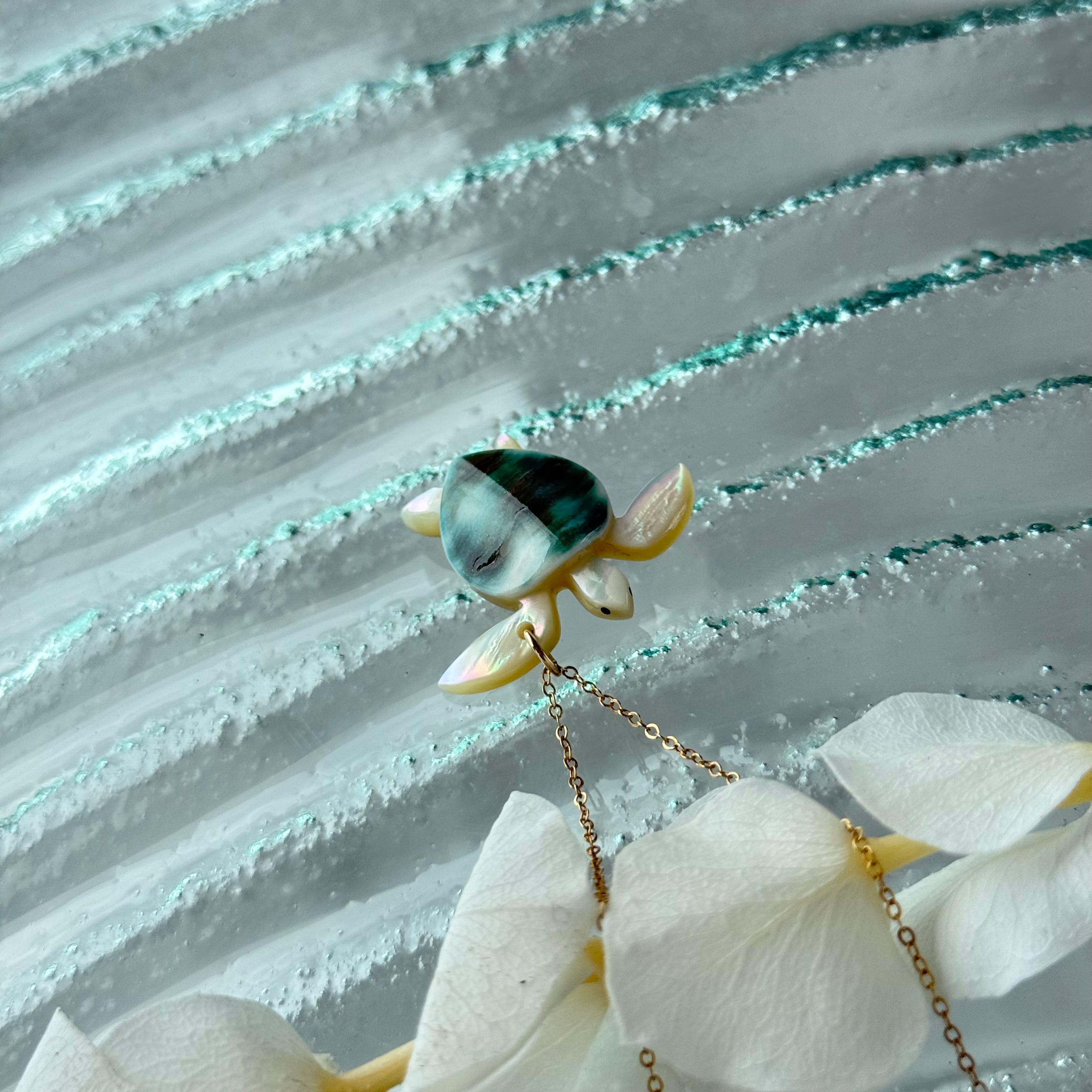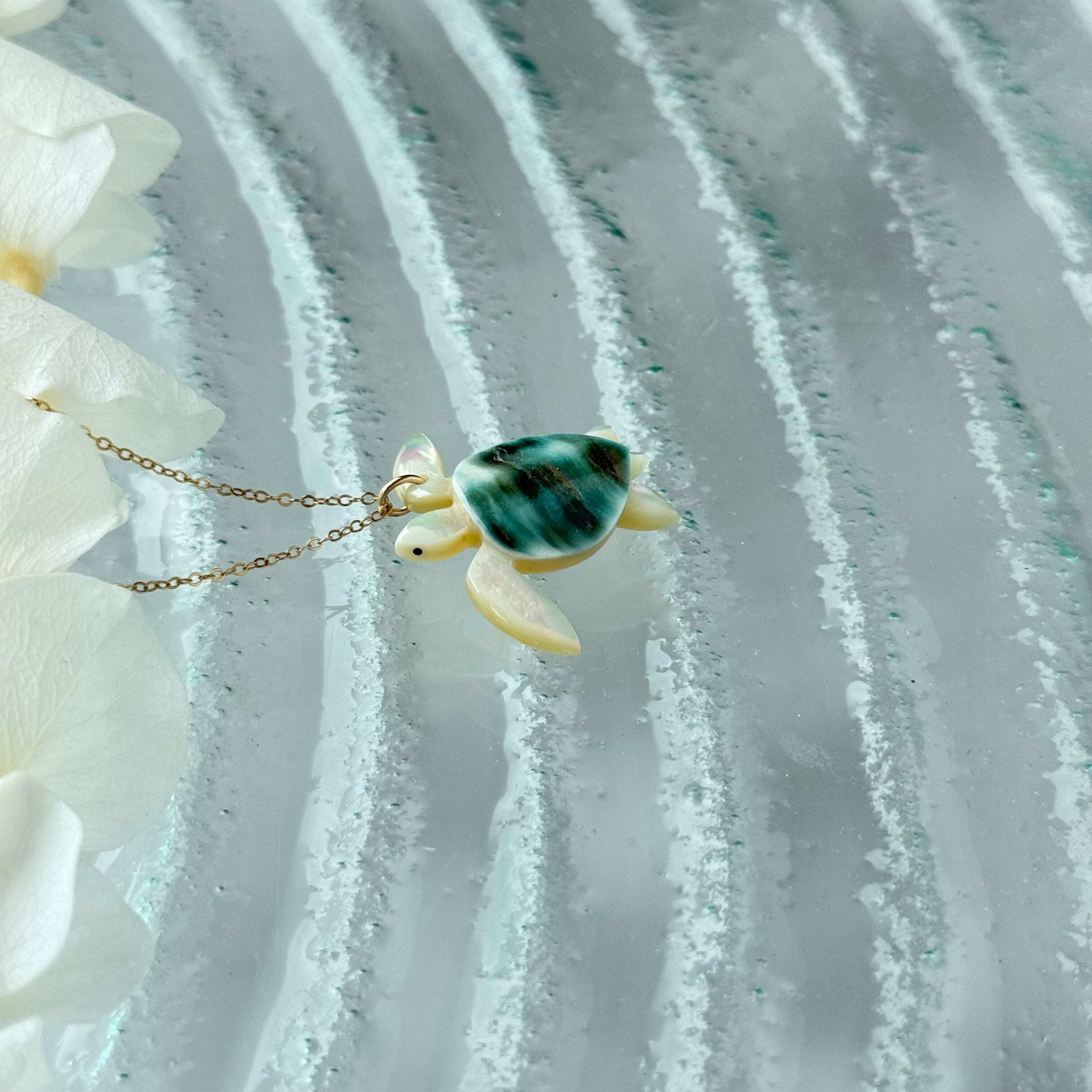 夜光貝 幸せの海亀 L ネックレス